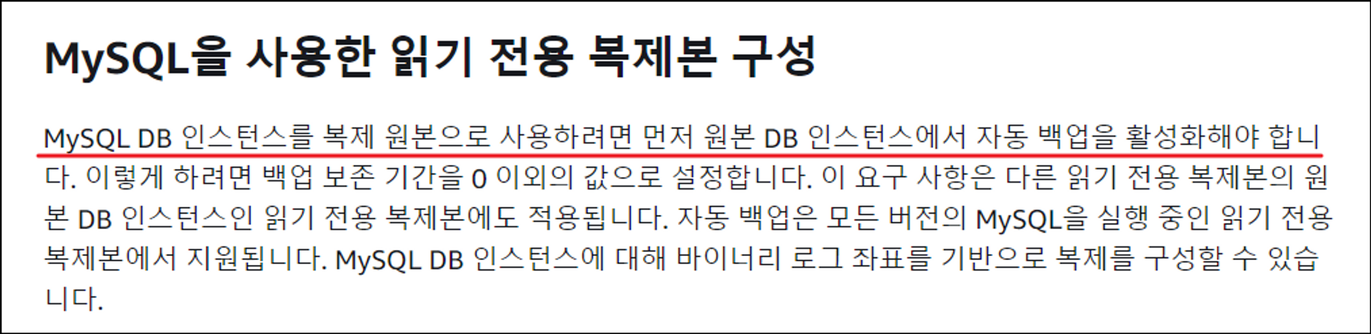 📌 Replica를 생성해야 하므로 자동 백업을 활성화 해주세요!