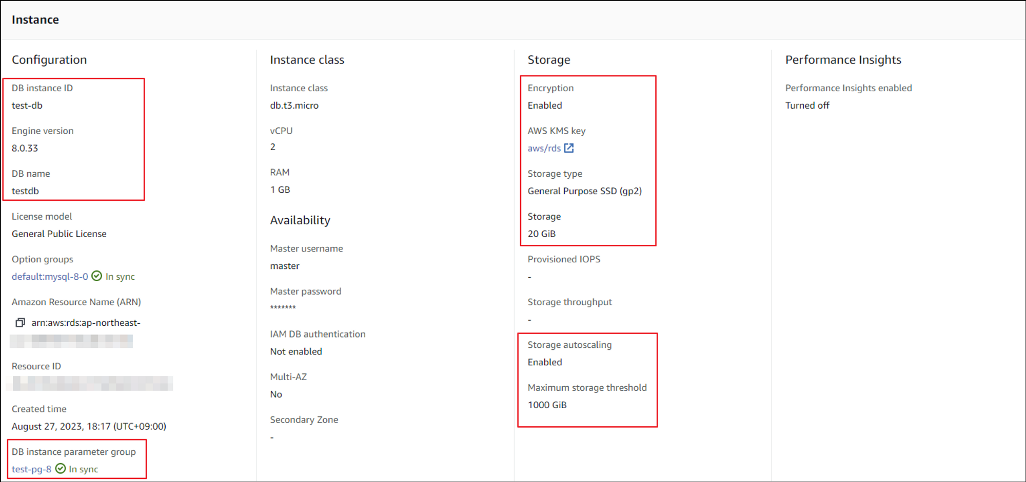 --kms-key-id alias/aws/rds \ # storage 암호 (aws kms key)