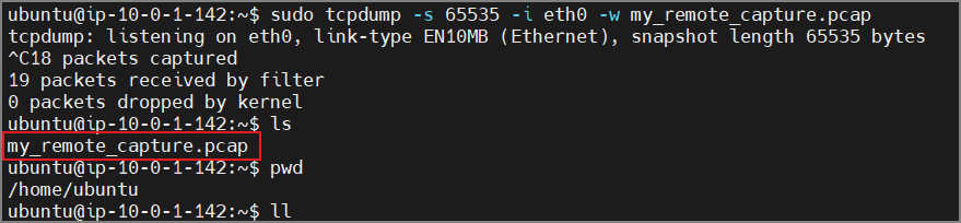 $sudo tcpdump -s 65535 -i eth0 -w my_remote_capture.pcap