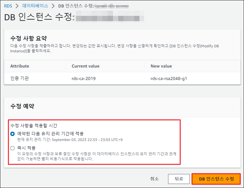 기존(rds-ca-2019)과 동일한 표준을 유지하려는 경우, ‘rds-ca-rsa2048-g1’ CA로 전환할 것을 권장드립니다.