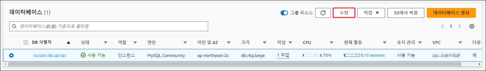 1. 갱신이 필요한 RDS 인스턴스를 선택합니다.