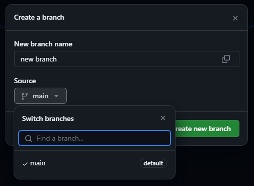 View all branches에서 New branch 생성을 해보겠습니다!!