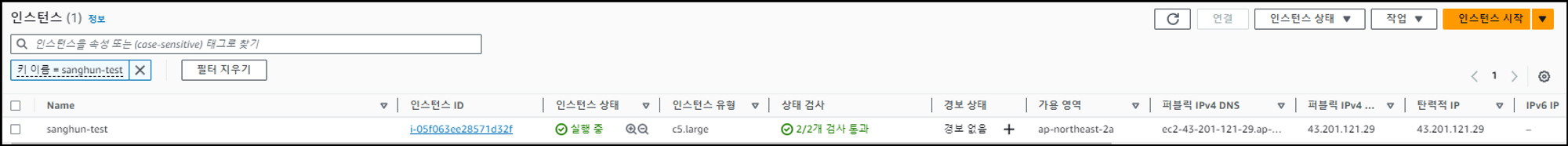 - 인스턴스 상태 → 중지 → 인스턴스 유형 변경(c5 or m5 or r5.large ) →인스턴스 상태 → 시작