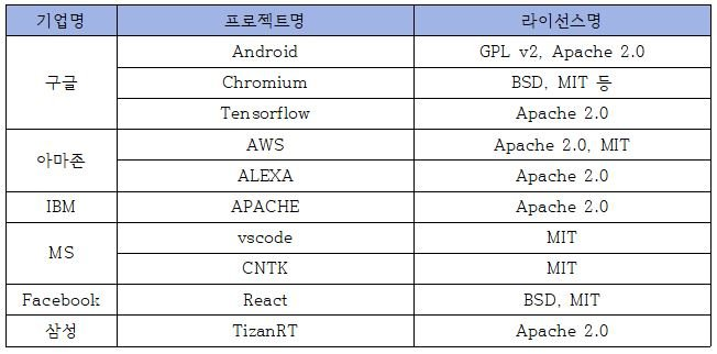 전세계 기업에서 오픈소스를 사용하는 기업은 65%에 달하며 오픈소스 시장은 점차 증가하고 있습니다. 오픈 소스는 소스코드가 일반 대중들에게 공개되어 자유롭게 열람이 가능하고 또한 이러한 오픈소스를 활용하여 2차 창작물을 만들어낼 수 있습니다.