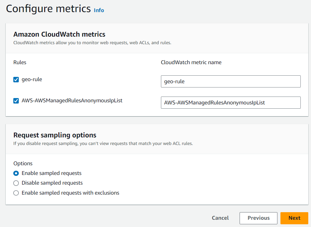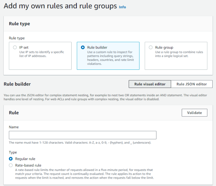 AWS가 제공해주는 룰셋을 골라 적용할 수 있으며 사용자가 직접 룰을 만들어 사용할 수도 있습니다.