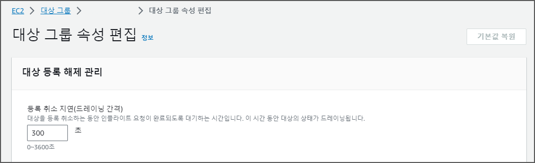 - 로드 밸런서의 대상 그룹 - 속성 편집을 통해 연결 드레이닝을 구성합니다.