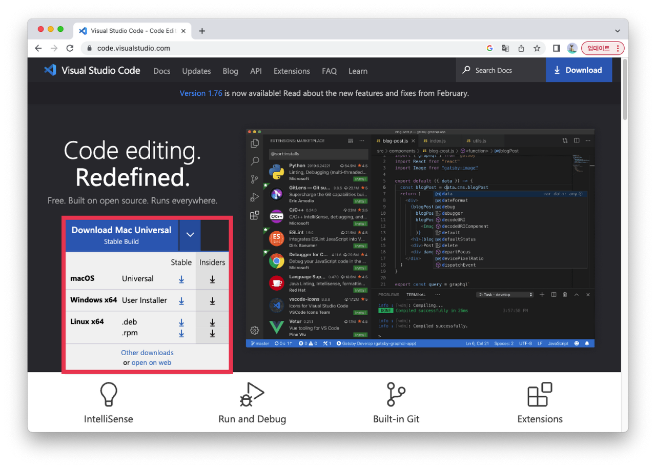 VS Code 사이트에 접속해 주세요.