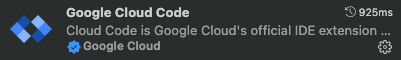 - 확장 프로그램이 설치된 후 Cloud Code 아이콘이 작업 표시줄에 추가되어 사용할 수 있습니다. 최상위 애플리케이션 작업 표시줄에서 코드 > 환경설정 > 설정 > 확장 프로그램 > Cloud Code를 사용해 환경설정을 지정하여 Cloud Code 설치를 추가로 구성할 수 있습니다.