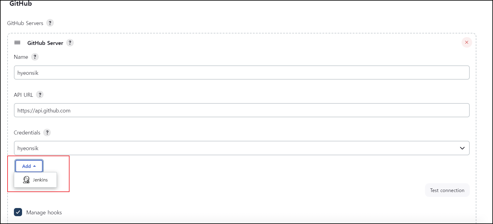 Jenkins관리 -> system 으로 가시면 githib 를 등록할 수 있습니다.