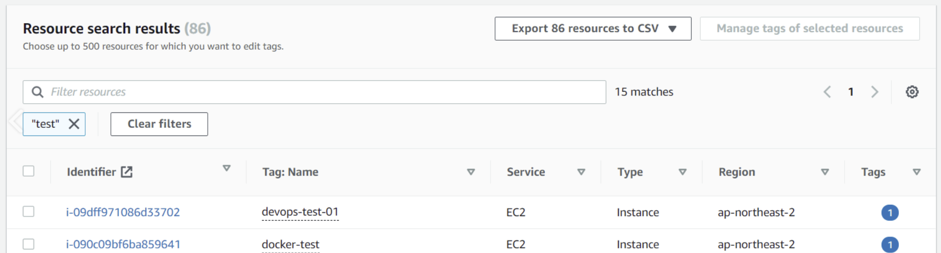 Tag Editor로 태그를 지정할 리소스를 검색한 다음, 검색 결과에 나온 리소스의 태그를 관리하면 됩니다.