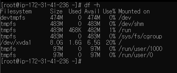 df -h 또는 mount 명령어로 정상 마운트 된 것을 확인할 수 있습니다.