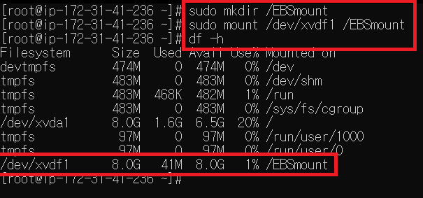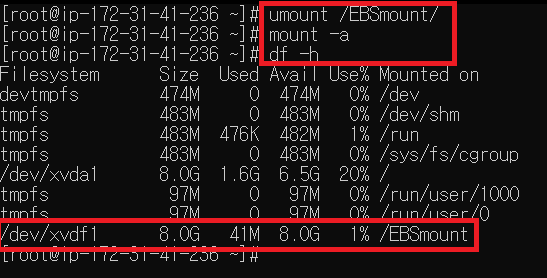 제대로 마운트 되지 않는다면, EC2 재부팅이 불가능할 수 있습니다.