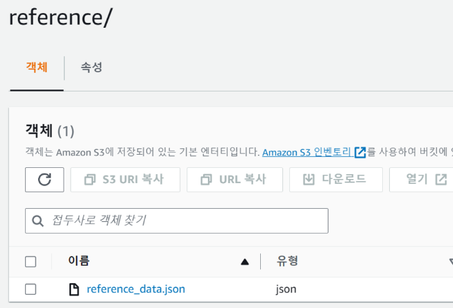 Glue Crawler를 통해 S3의 Reference 데이터를 스캔하여 reference 테이블을 생성한 것을 확인 할 수 있습니다.
