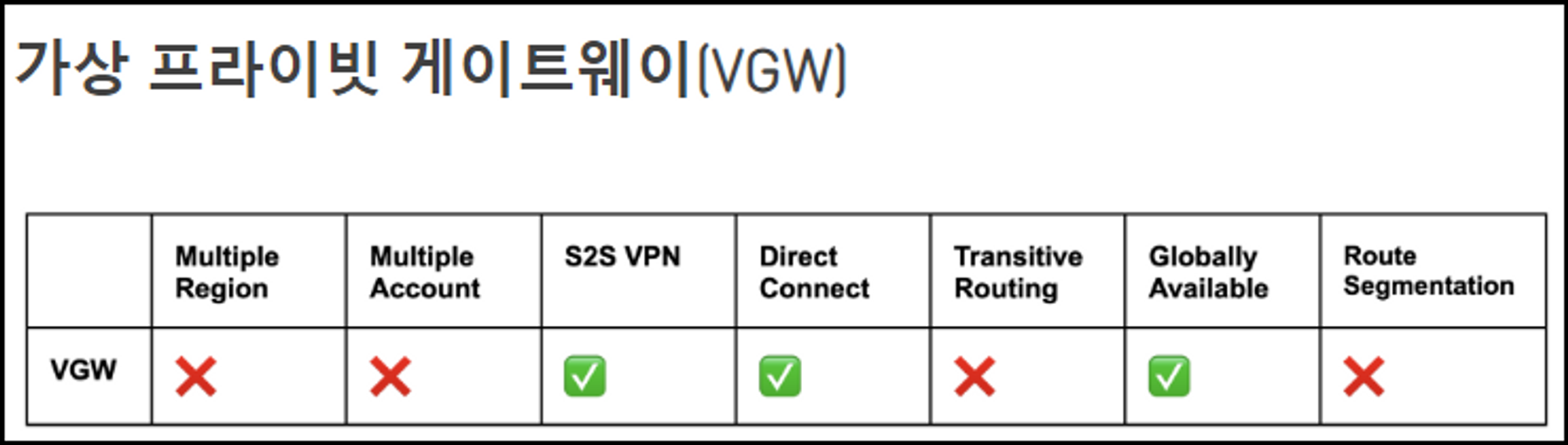 VGW는 단일 VPC와의 연결을 관리하는 데 사용되는 더 단순한 기능을 제공합니다.