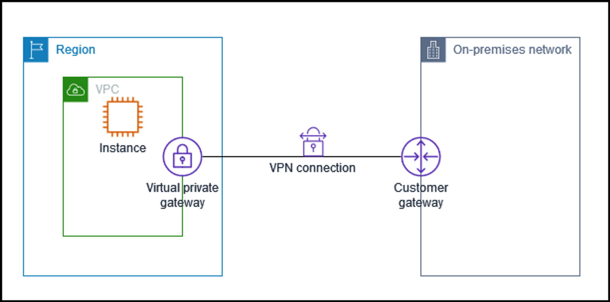 두 개의 네트워크 도메인이 가상의 사설 네트워크 연결을 사용하여 프라이빗 통신을 가능하게 해주는 서비스로 IPsec만 지원합니다.