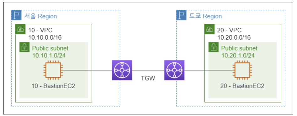 오늘은 Transit Gateway를 활용하여 Multi Region 환경에서 통신하는 구조를 구축하고 테스트해보는 실습을 진행해보겠습니다!