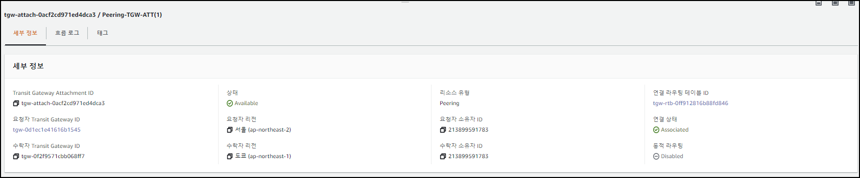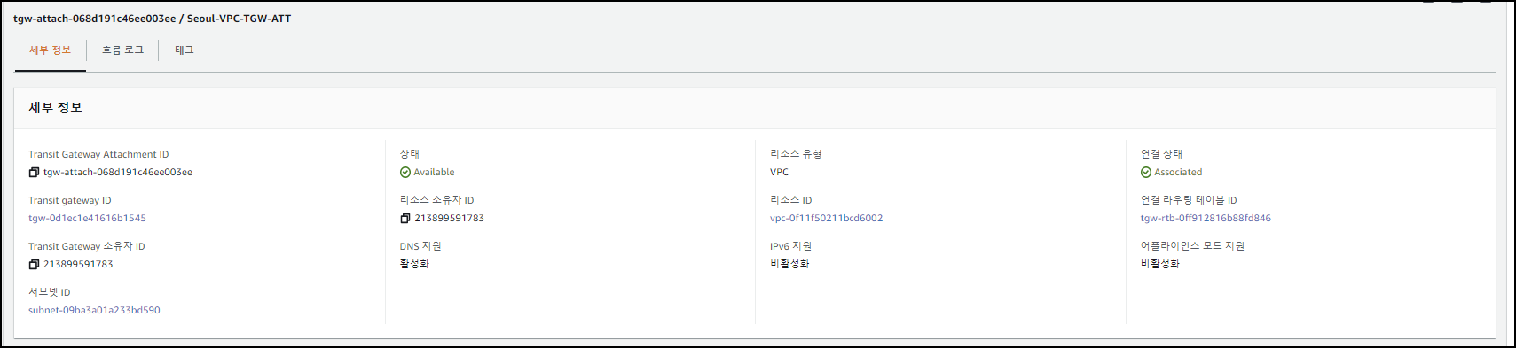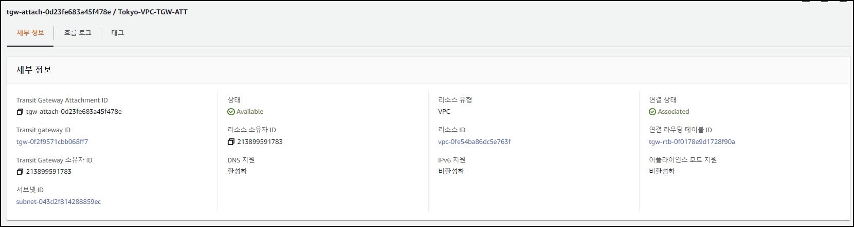 -각 리전의 VPC와 TGW를 연결하는 작업을 진행합니다. (도쿄와 서울에서 각각 진행)