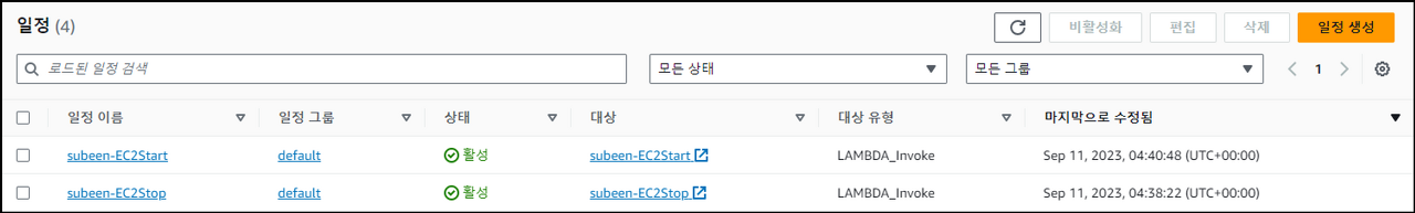 AWS Console → Event Bridge → Scheduler → 일정 → 일정생성