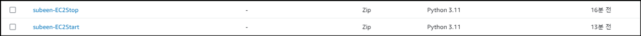 람다 함수가 생성된 것을 확인 할 수 있으며, 실행 시켰을 때 해당 EC2가 정상적으로 중지, 시작 됩니다.