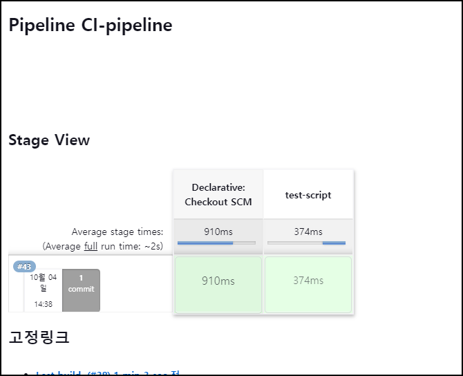 자동적으로 Jenkins 에서도 파이프라인이 동작된것을 확인할 수 있습니다.