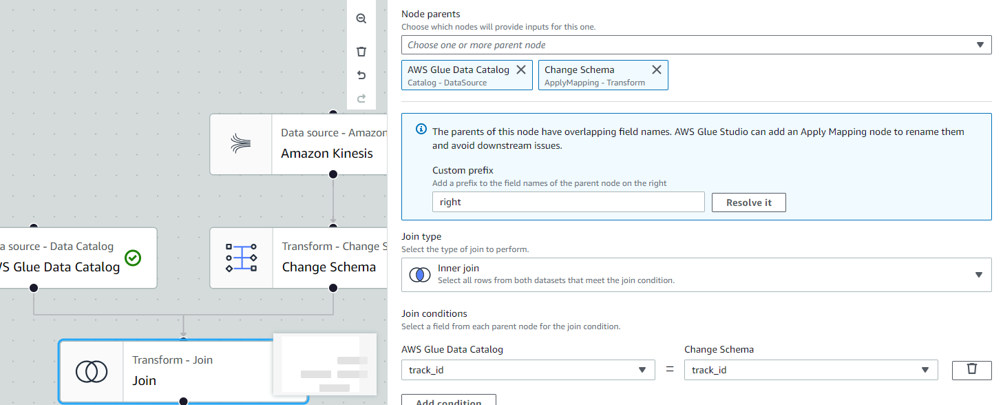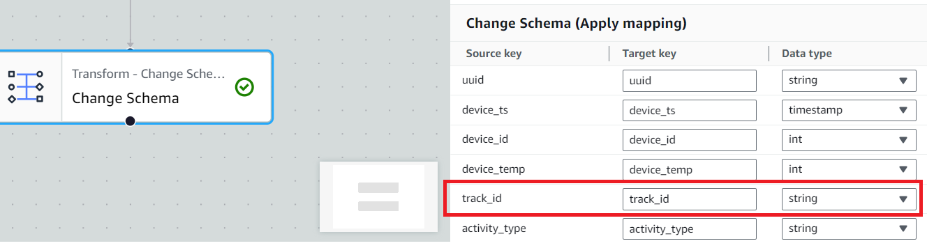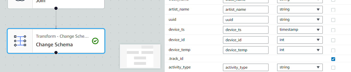 - Node Parent : AWS Glue Data Catalog, Change Schema