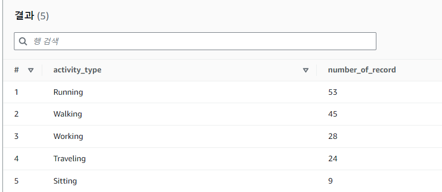 AS SELECT "activity_type", count("device_id") as Number_of_Record