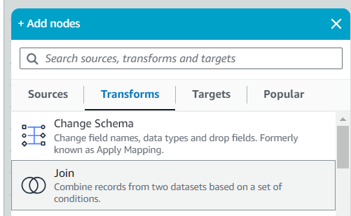 Transforms > Join을 선택합니다.