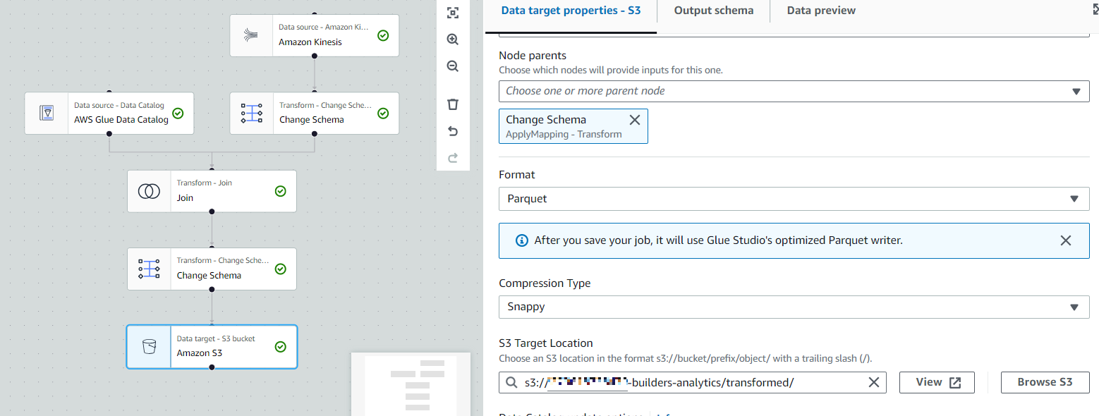 - S3 Target Location : {AWS Account}-builders-analytics/transformed/
