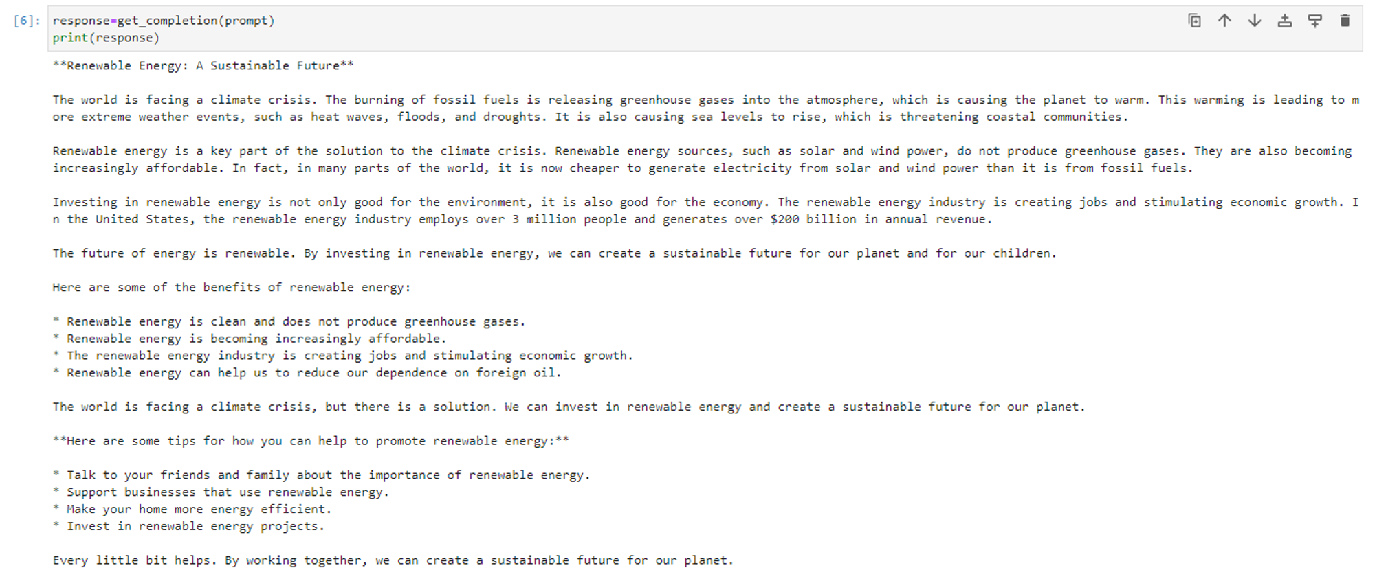 4. 프롬프트를 입력 받아 글을 생성하고 출력하는 함수 생성