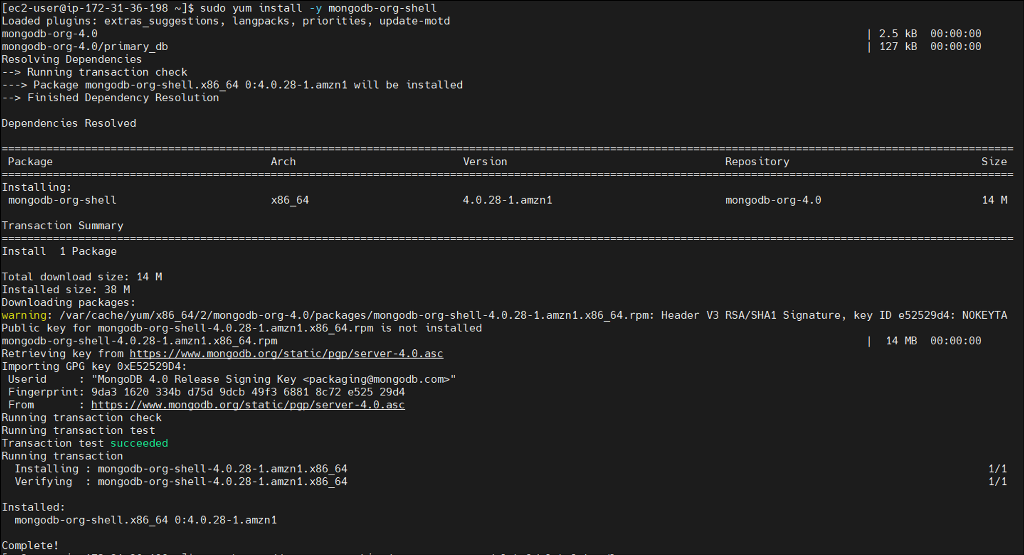 그래서 AWS docs를 따라 Amazon Linux 2로 다시 만들어보니 몽고 쉘이 잘 설치 되었습니다.