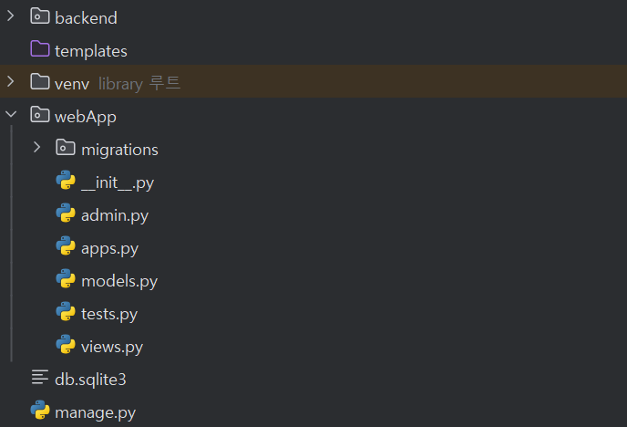 앱을 생성한 후의 디렉토리 구조는 다음과 같습니다.