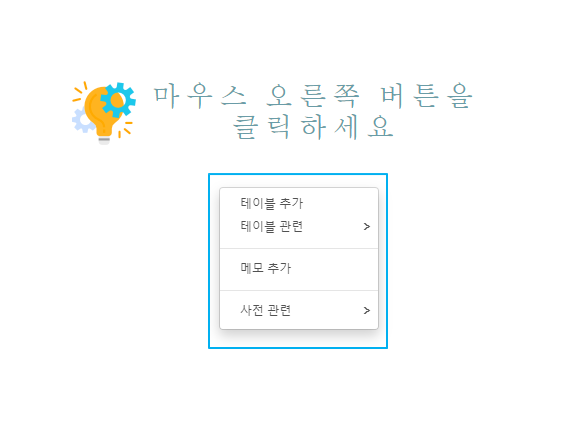 그러면 왼쪽 상단에 테이블 선택에서 테이블을 찾아갈 수 있어요.