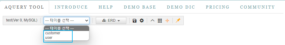 AQueryTool은 웹 기반 ERD 툴 + SQL 자동 생성 프로그램입니다.