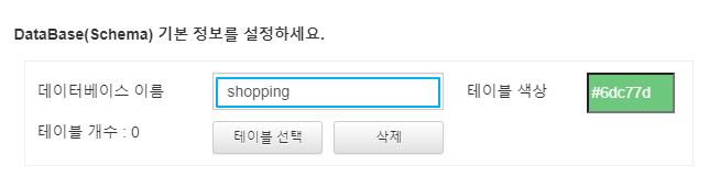생성할 데이터베이스의 이름과 테이블 색상을 지정해줘요.