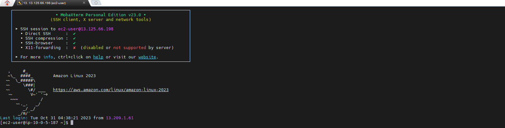 ※ 연결 실패 시 AWS IP 주소 대역대를 보안그룹(SSH)에 추가해줘야함 해당 ip 주소찾으려면 Cloudshell에서 아래의 명령어 활용