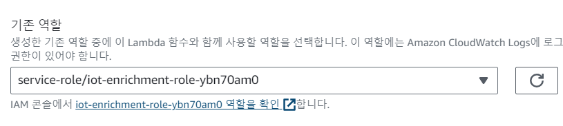 Lambda 검색 버튼을 클릭하여 이전 세부 모듈에서 생성한 iot-enrichment를 클릭합니다.
