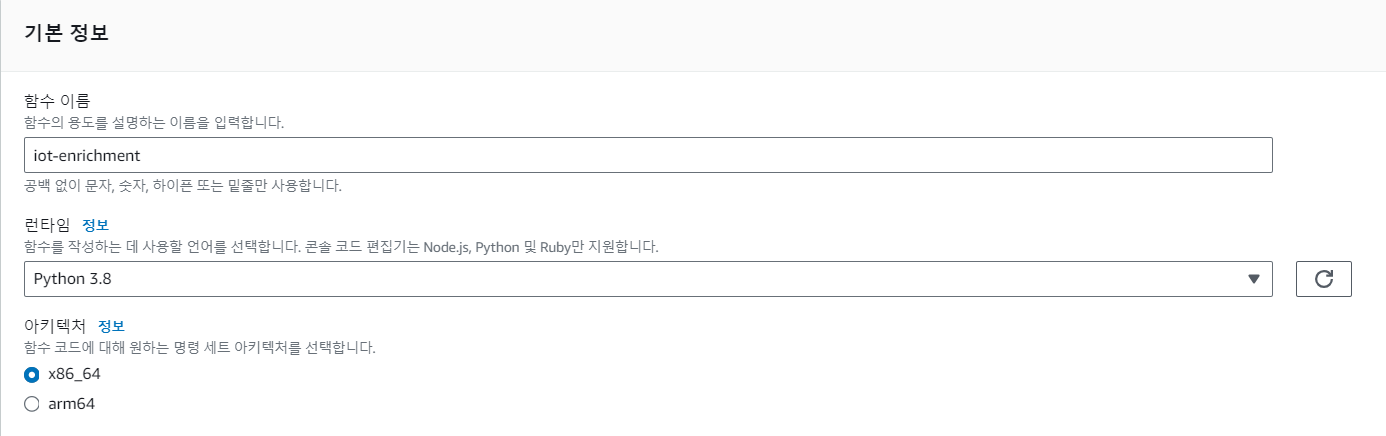 우선, 실시간 데이터를 Amazon Opensearch에 저장하기 전에 데이터 추가 및 정제를 위한 Lambda를 구현합니다.