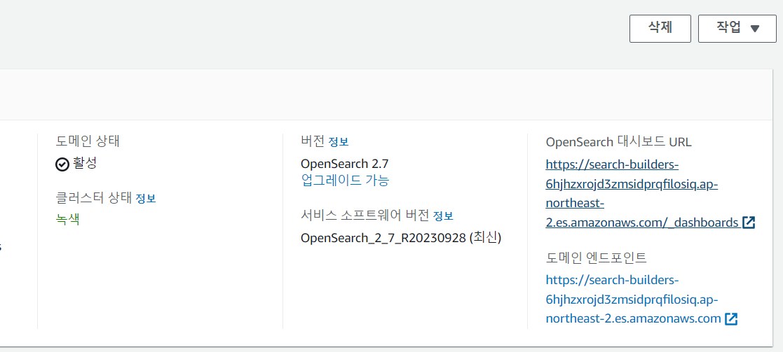 이후 Opensearch로 이동, 'builders' 도메인을 클릭합니다.