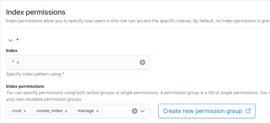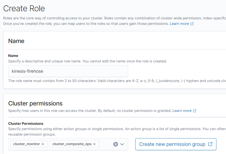 Opensearch에 로그인 후 왼쪽 메뉴 > Security > Role 선택 후 생성