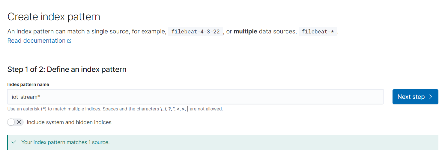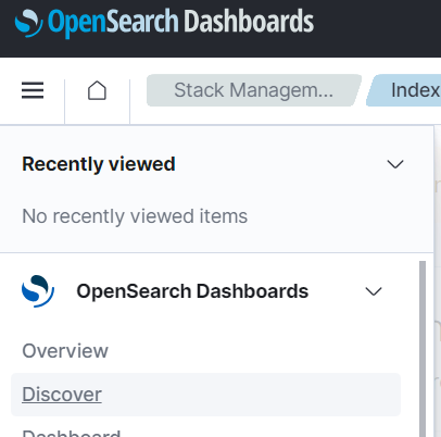 데이터 저장 확인 후 Amazon Opensearch > Discover 메뉴로 이동, Create Index pattern를 클릭해 생성합니다.