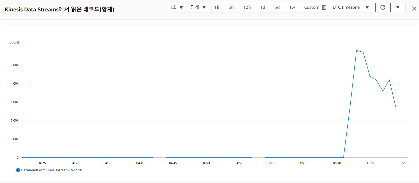 내역의 그래프를 확인해 Kinesis Data Streams로부터 데이터를 성공적으로 가져오고,