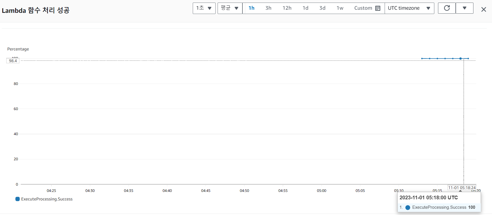 Lambda로 전처리 후 Opensearch에 전송하는 내역을 확인합니다. 모니터링이 업데이트되기까지 약 5분 정도 소요됩니다.