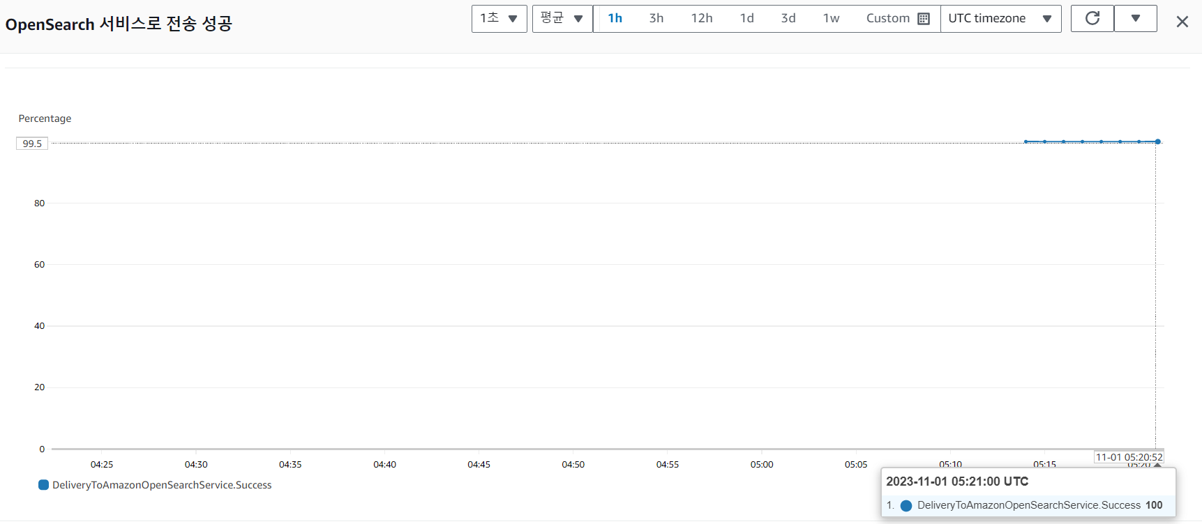 Kinesis Data Firehose > kinesis-opensearch에서 모니터링 탭이 업데이트 될 때까지 잠시 기다립니다.