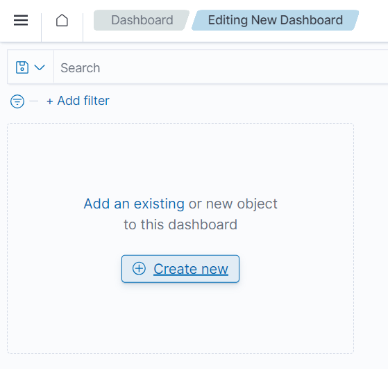 Opensearch > Dashboard > create new dashboard를 클릭합니다.