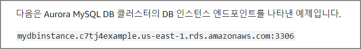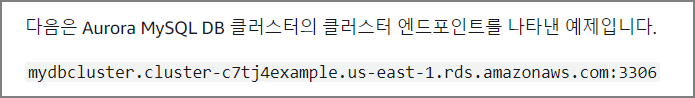 보통 엔드포인트는 호스트주소와 포트를 포함하는 Aurora 별 URL의 형태로 표시 됩니다.
