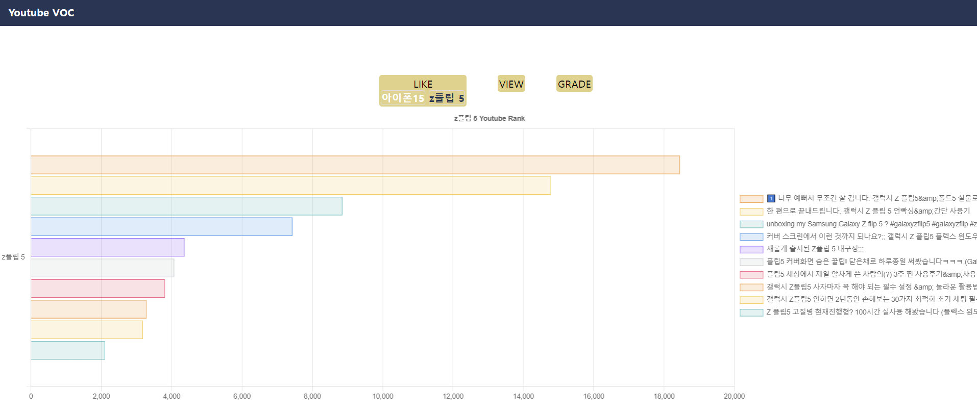 오늘은 Chart.js를 사용해 기존에 Youtube API로 수집한 데이터를 차트로 시각화 하겠습니다.