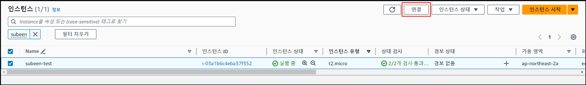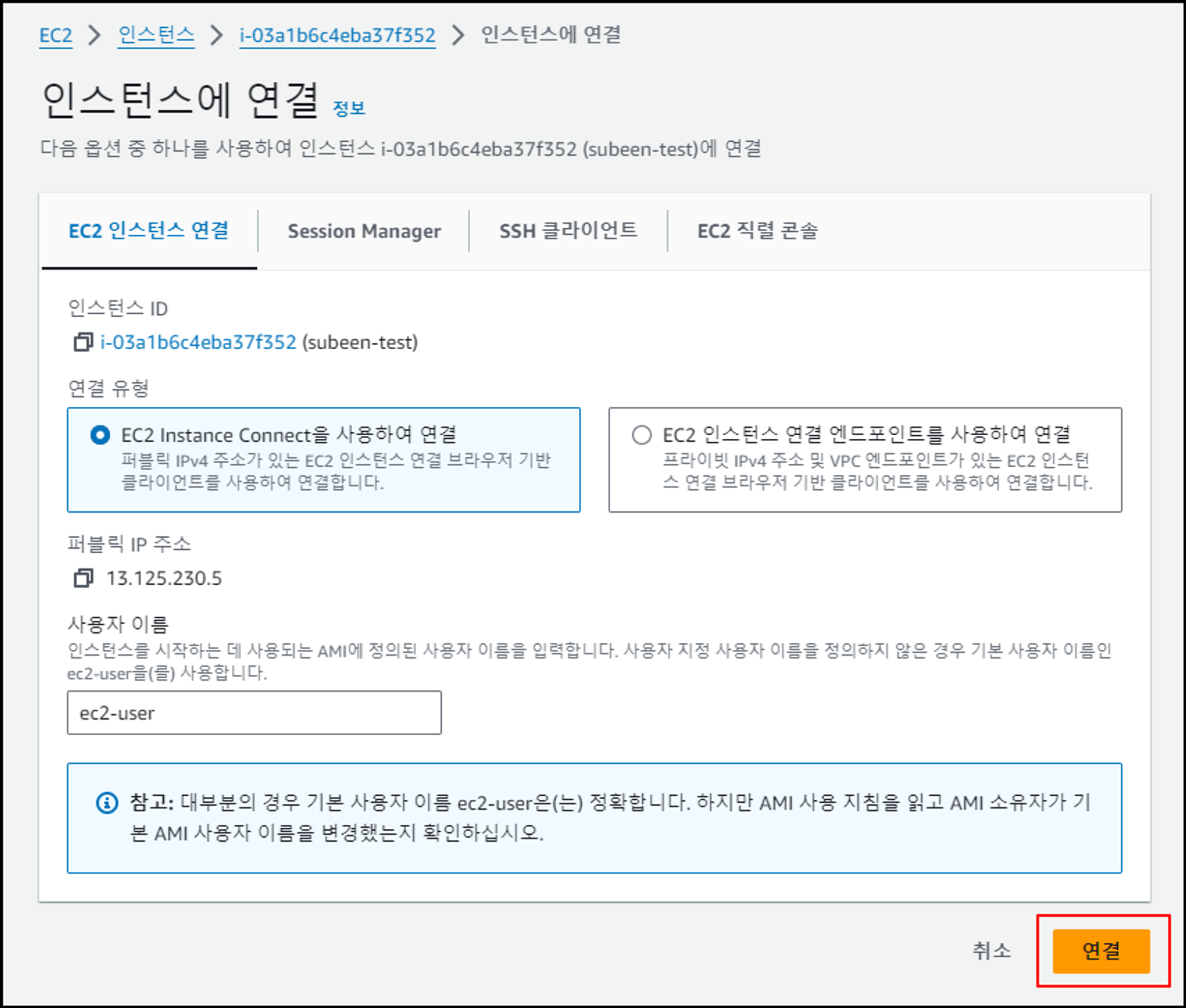 그렇기 때문에 Instance Connect를 사용하여 EC2에 접속해줍니다.