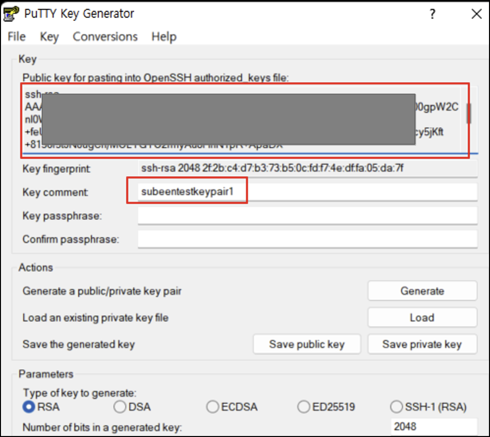 - putty Keygen에 keypair를 업로드해 줍니다 !