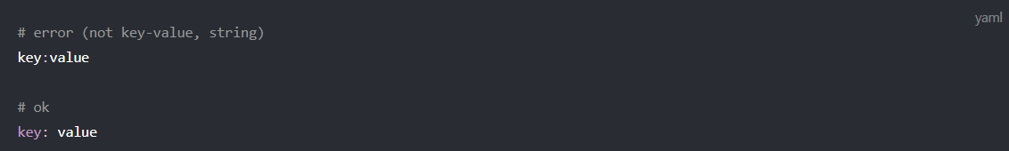 key와 value사이에는 반드시 빈칸이 필요합니다.