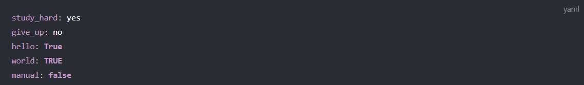 참/거짓은 true, false외에 yes, no를 지원합니다.